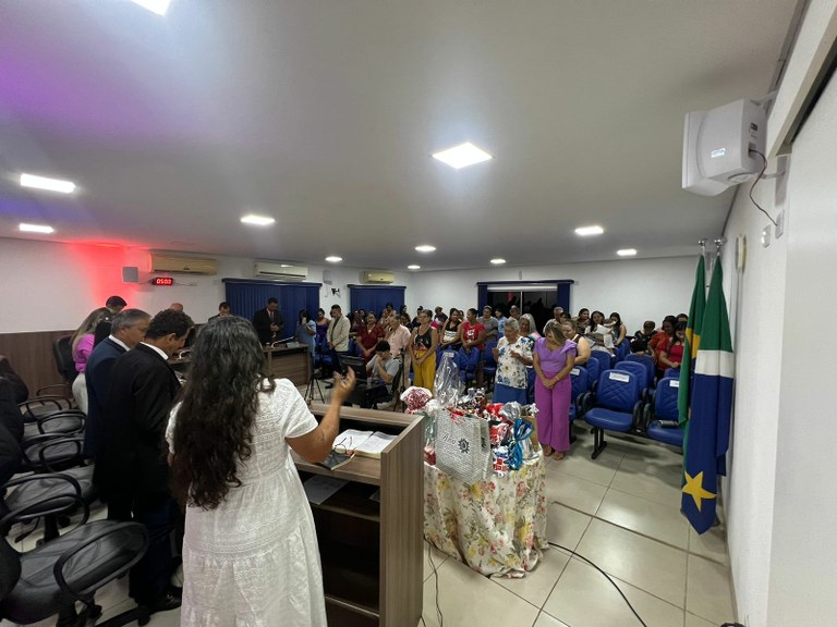 Com a participação efetiva de todos os vereadores e grande número de mulheres que abrilhantaram o plenário da Câmara Municipal, o evento foi encerrado em clima alegre e descontraído, sendo realizado o registro do momento.