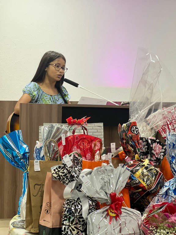 Durante o cerimonial, a jovem Ana Clara Moreno Amorin fez uma bela apresentação musical em homenagem a todas as mulheres, cantando a música Maria, Maria – de Milton Nascimento. Por sua disposição e por representar a juventude feminina, Ana também foi homenageada, recebendo das mãos de sua mãe, a servidora Kátia de Souza Moreno Amorin, uma cesta como forma de agradecimento.